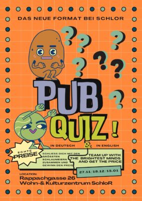 Beim zweiten Pub Quiz bei SchloR erwartet euch wieder ein Abend voller spannender Fragen. Wie immer findet das Quiz zweisprachig (Deutsch & Englisch) statt.